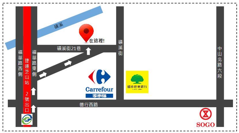 - 活動地點:台北市士林區磺溪街21巷22號(自捷運芝山站2號出口步行5分鐘可抵達。)