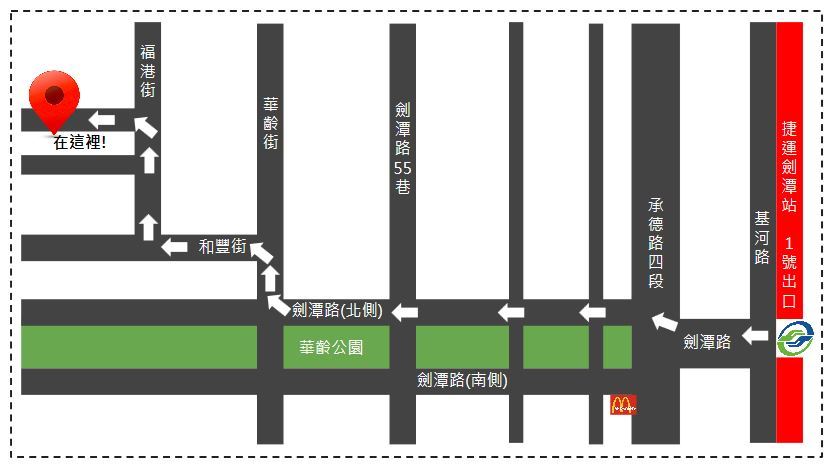 - 活動地址:台北市士林區福港街272巷11號B1(自捷運劍潭站1號出口步行10分鐘可抵達。)