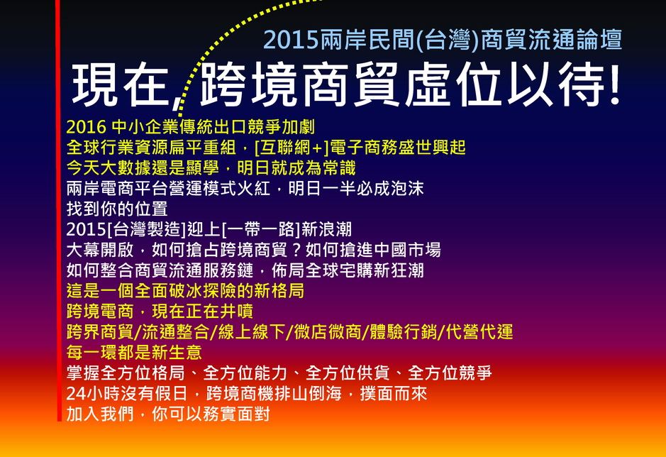 利用跨境商貿,立足台灣,貨暢中國行銷全世界.