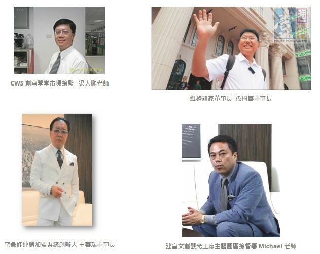 「建富文創」特邀四位成功的企業家,維格餅家孫國華董事長(股票代號:2733)、CWS創富學堂市場總監-梁大鵬、宅急修連鎖加盟系統創辦人-王華瑞,以及建富文創總裁-Michael,為在創業路上徘徊的你,點亮一盞明燈!讓你看見創業者的氣勢和氣魄,更讓你體會企業家的創新和執行力。