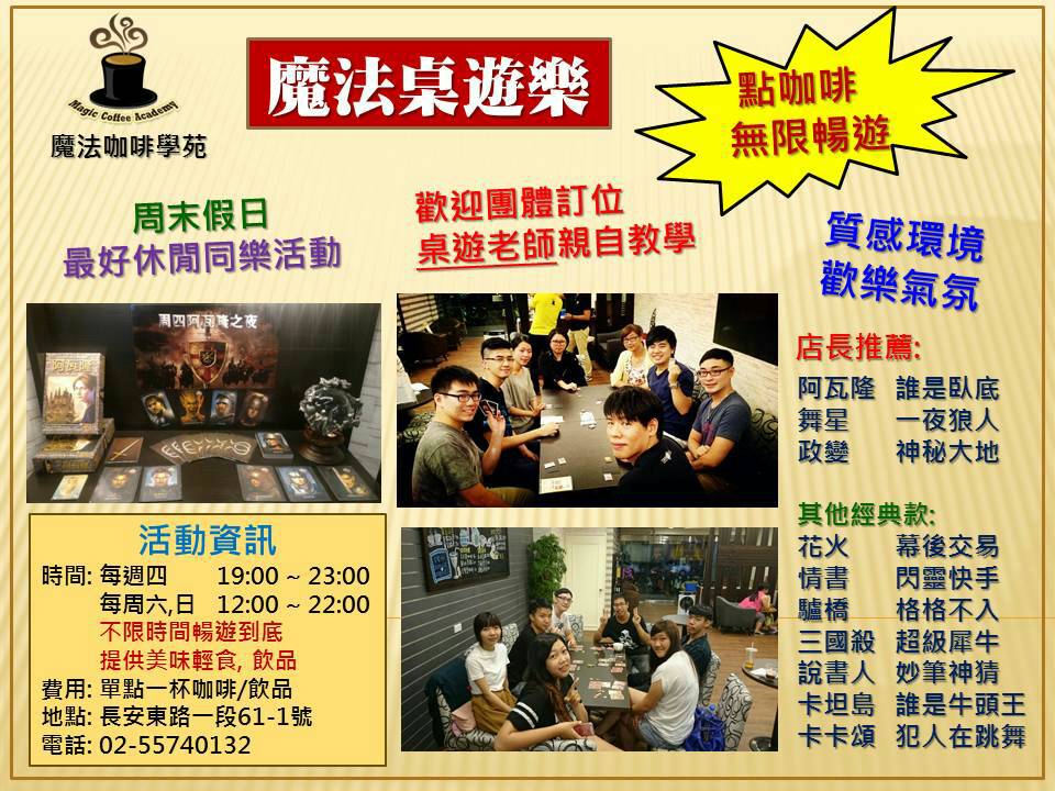12/26魔法歡樂桌遊團-舞星,政變,一夜狼人,卡坦島,驢橋,阿瓦隆,誰是大老闆,璀璨寶石