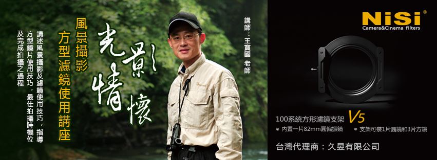 由王寶國老師授課,講述風景攝影及濾鏡使用技巧,分享指導方形鏡片使用技巧。分享風景拍攝地點、最佳拍攝時機以及完成拍攝的過程。