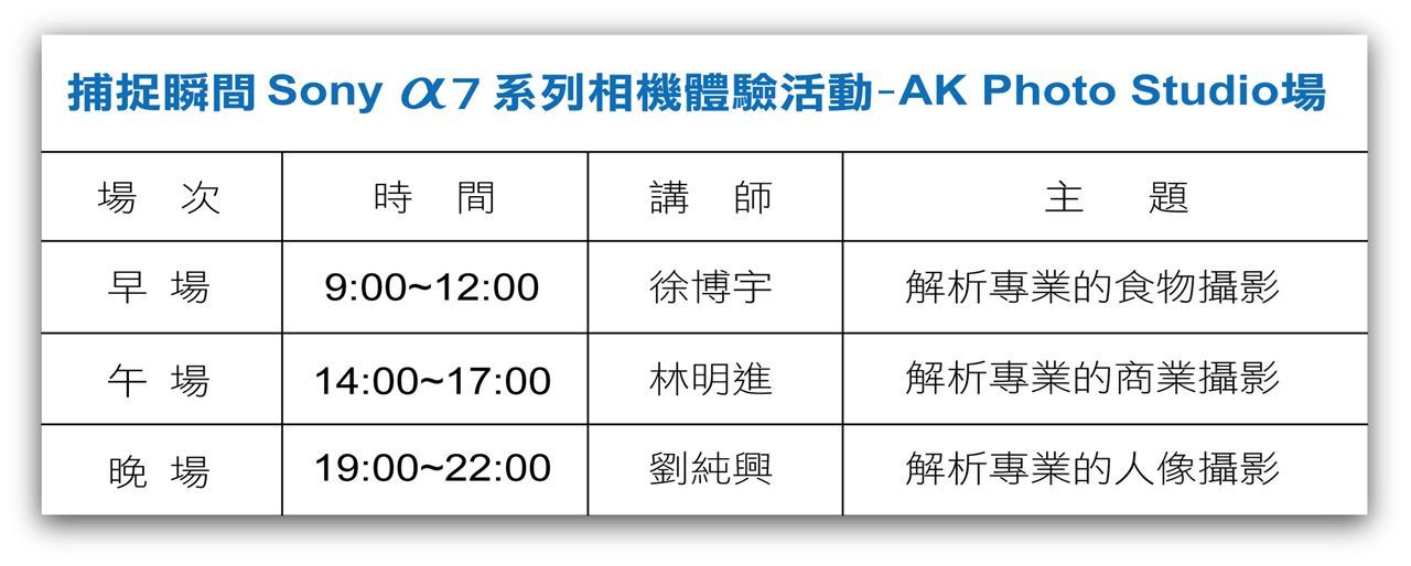 現任:迷彩廣告攝影公司負責人、Sony 專業攝影講師、三創生活園區講堂講師。
