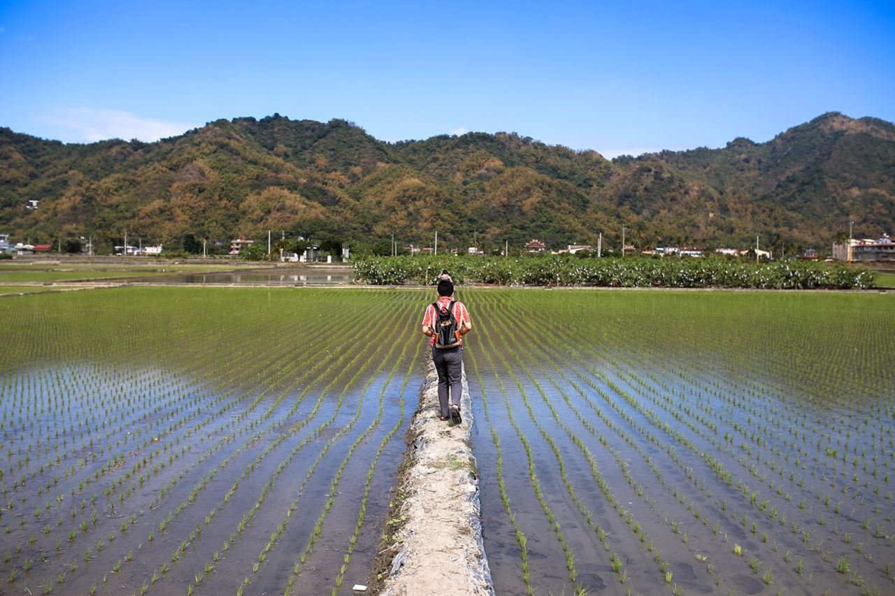 美濃地理環境三面環山,下國道10號之後進入美濃,映入眼簾的就是美濃山系。美濃山不高卻獨特的山形,美濃人看到就知道自己回到家了,對遊客來說則是屬於美濃的特殊地景印象。從自行車店出發,沿著美濃山下走,一邊是矮山、一邊是如棋盤的農田,這是外地遊客少有的經驗。