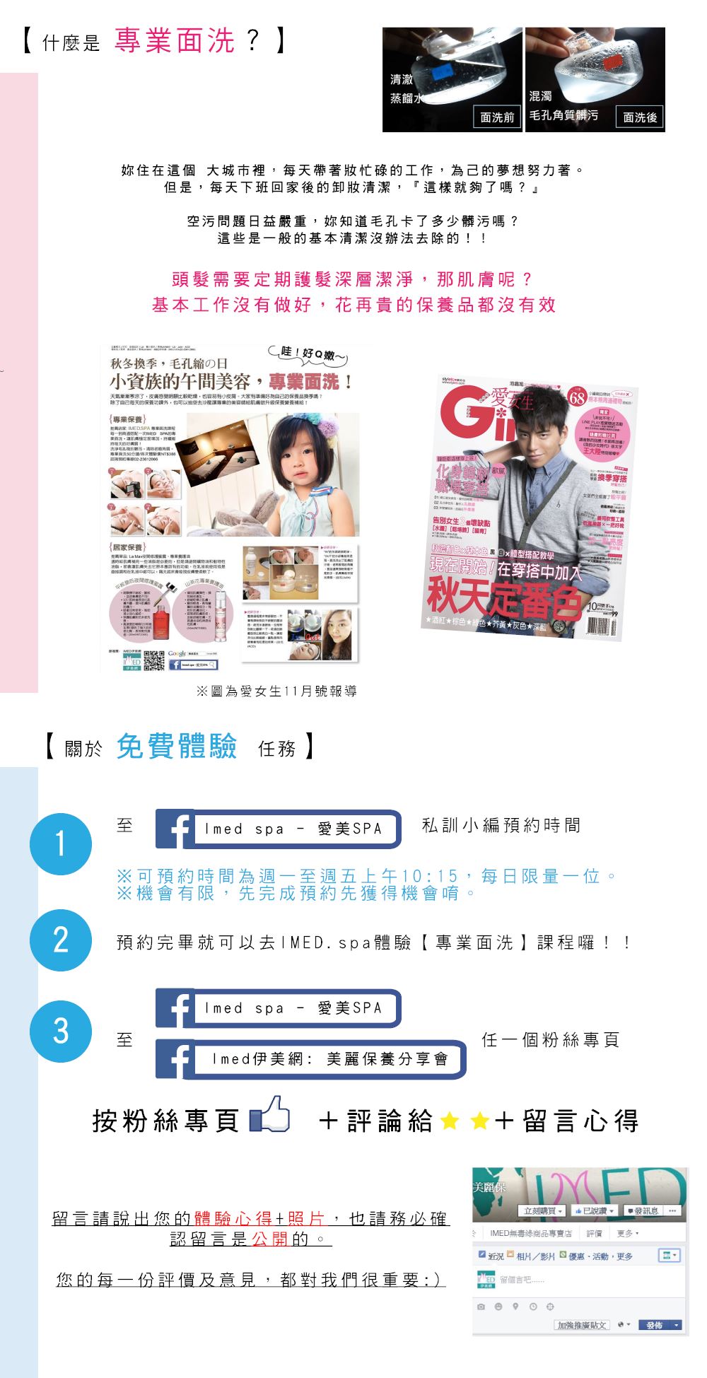 只要三步驟,就可以免費獲得原價$799的【IMED.spa專業面洗】唷