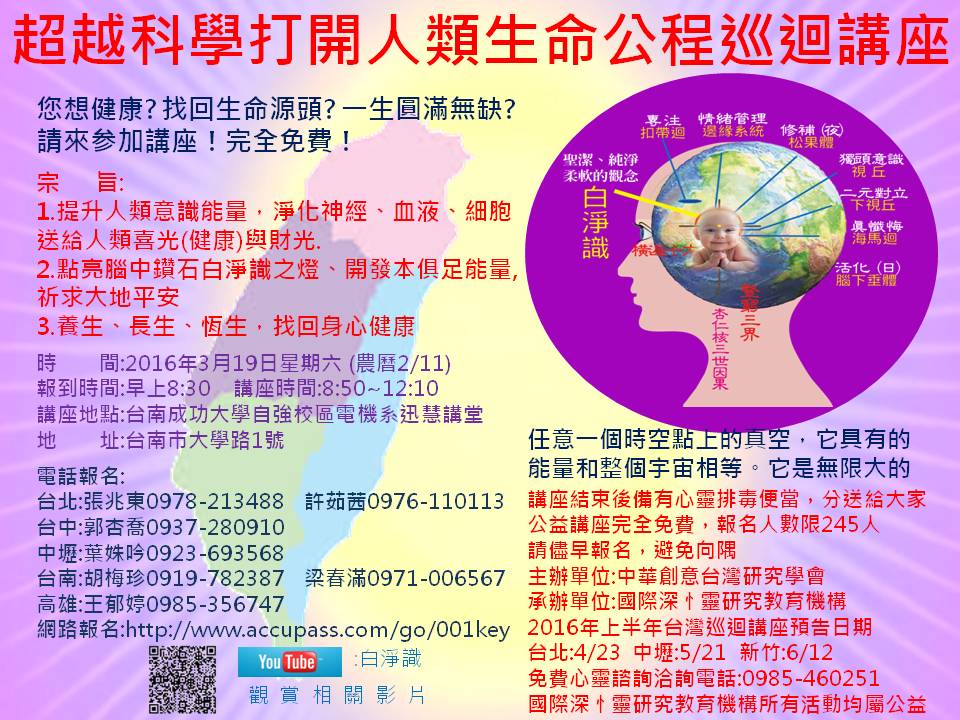 公益講座是由一群白淨理行者主動發起的,這裡的每一個人都希望能夠喚醒大家愛的能量,讓教育回歸自身,如同國際深忄靈研究教育的宗旨:白淨識,我本健康、我本喜樂、我本圓滿,心愛敵人、心幫助人,無怨無悔的付出。一顆聖潔、純淨、柔軟,白淨識的心,一起為地球媽媽盡一份心力。