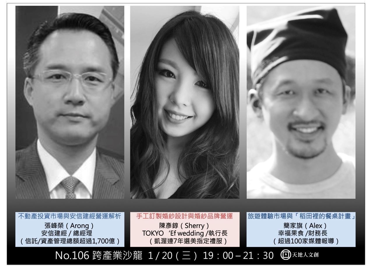 信託商模與不動產市場、禮服與婚紗設計品牌、稻田裡的餐桌計畫與社企經營