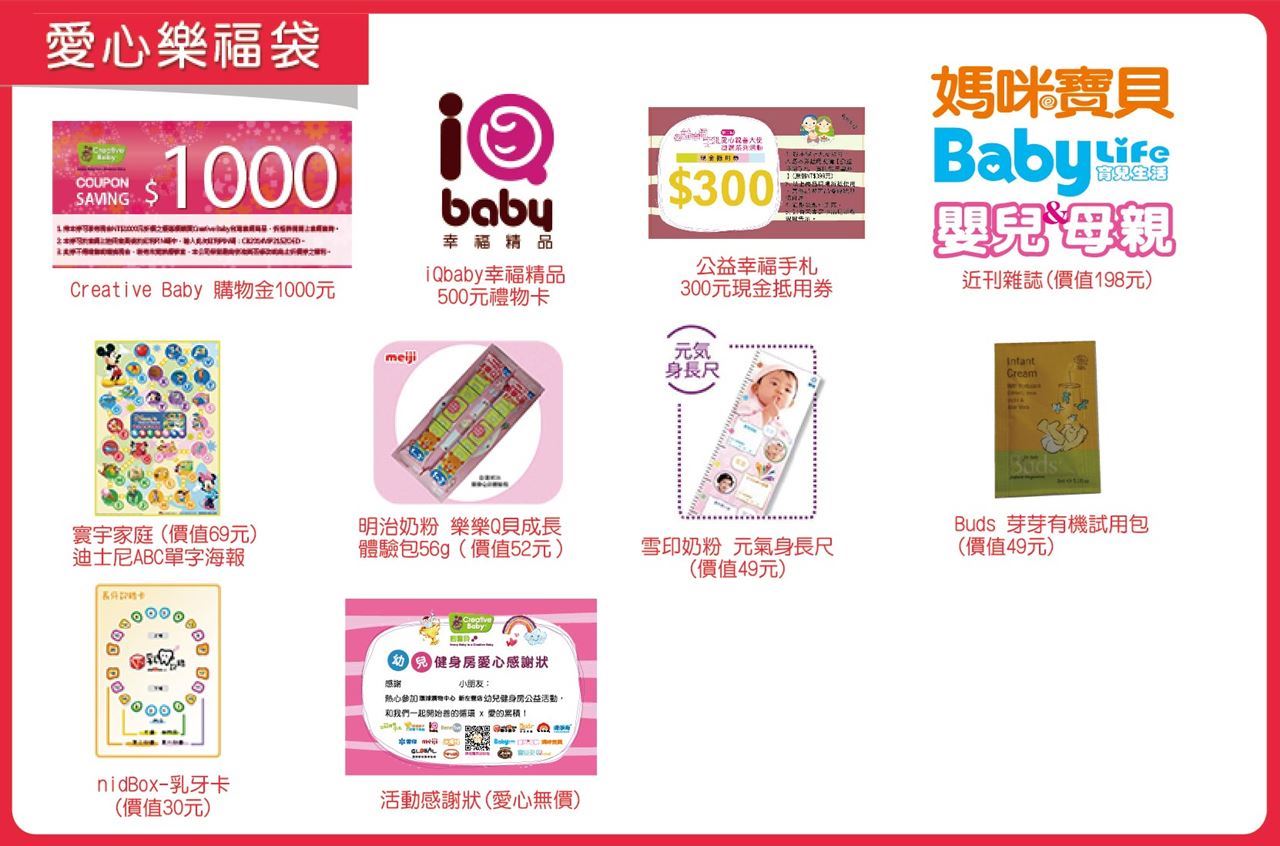 - 3.凡參加Creative Baby創寶貝幼兒健身房活動者,都免費正式成為【Creative Baby官網】及【IQ Baby幸福精品】終身會員,不定期享有會員優惠。