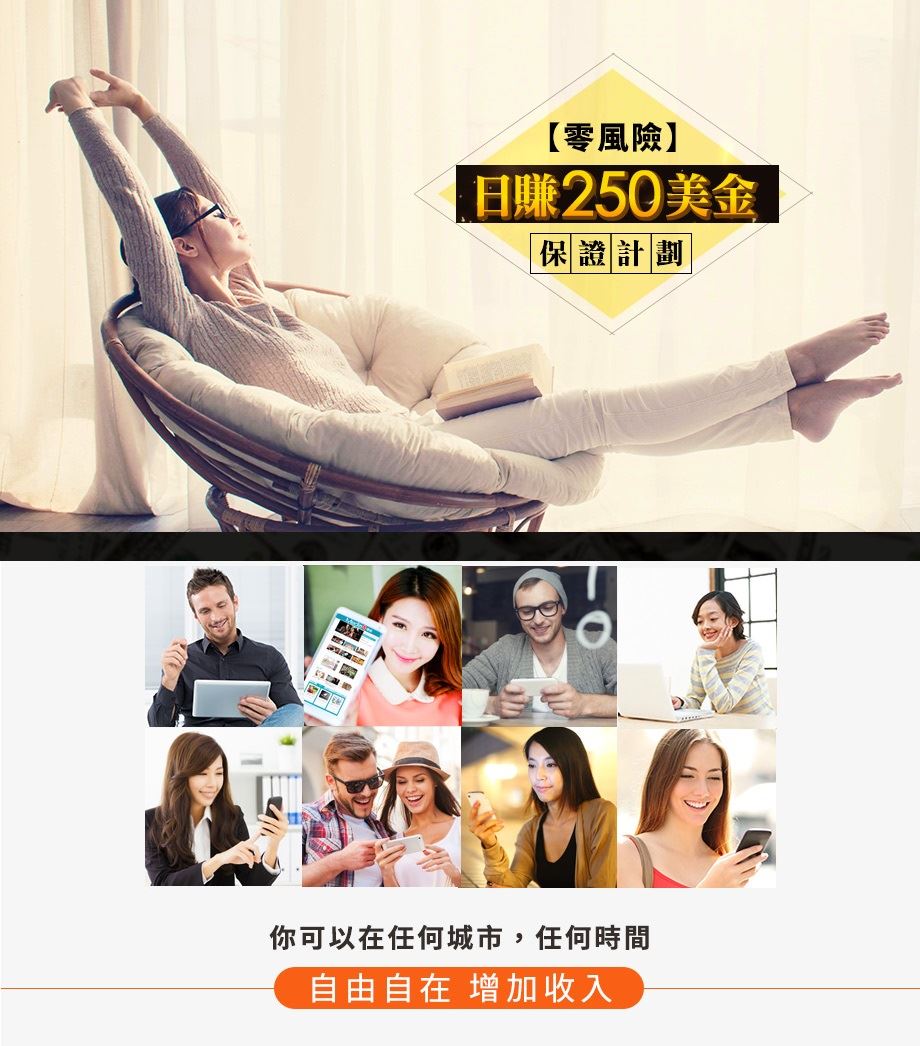 不論在哪裡,只要拿起手機就能隨時隨地日賺250美金...