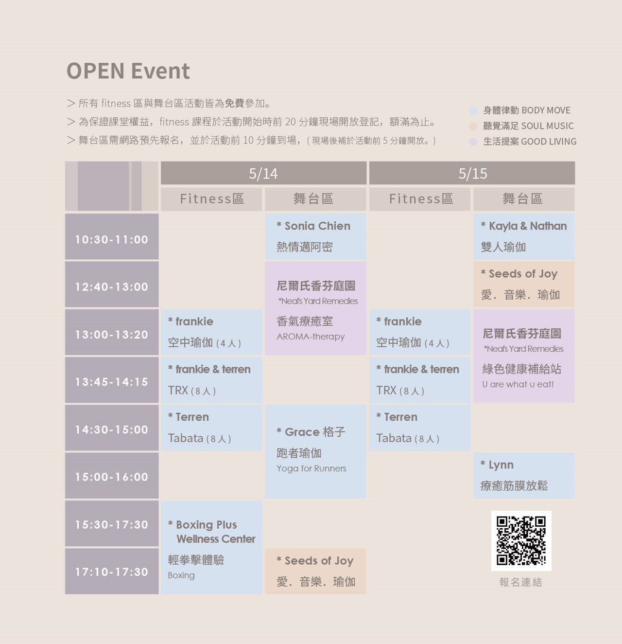 *為保證課堂權益,肢體律動 Body Move與生活提案 Good Living課程請先網上報名
