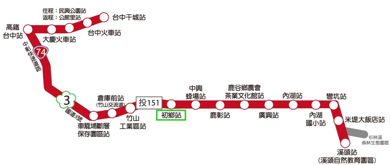 2.搭乘「台灣好行溪頭線」巴士,從台中干城站、台中火車站或台中高鐵站出發,至初鄉站下車,行車時間約1小時10 分鐘。