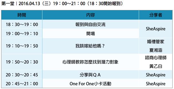 第一堂|2016.04.13(三)19:00~21:00