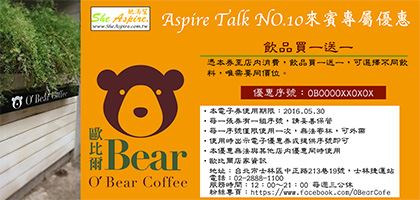 ▶O'Bear Coffee 歐比爾咖啡飲品買一送一券(請參考下方加值票專屬好康介紹)