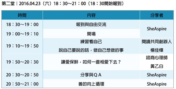 第二堂|2016.04.23(六)19:00~21:00