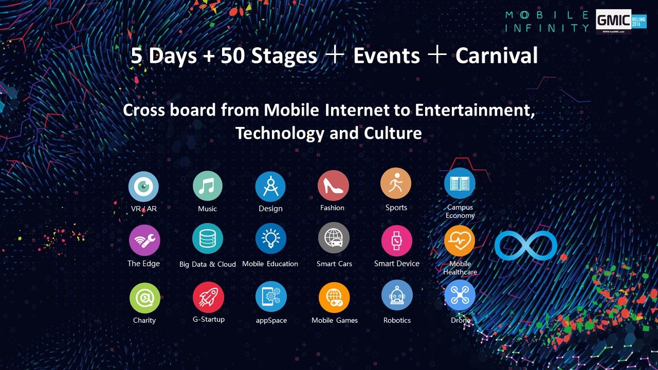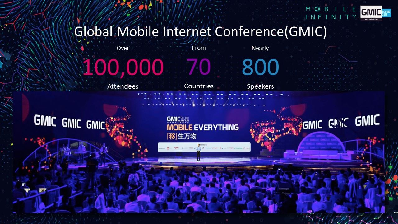 GMIC是全球規模最大、最具影響力的移動互聯網行業盛會。 2016年大會主題為"世界的共振","共振"是物理學的專業名詞,而在"互聯網+"的世界裡,創新是振源,移動互聯網是連接器,宇宙和世間萬物因此連接,形成美麗新世界。