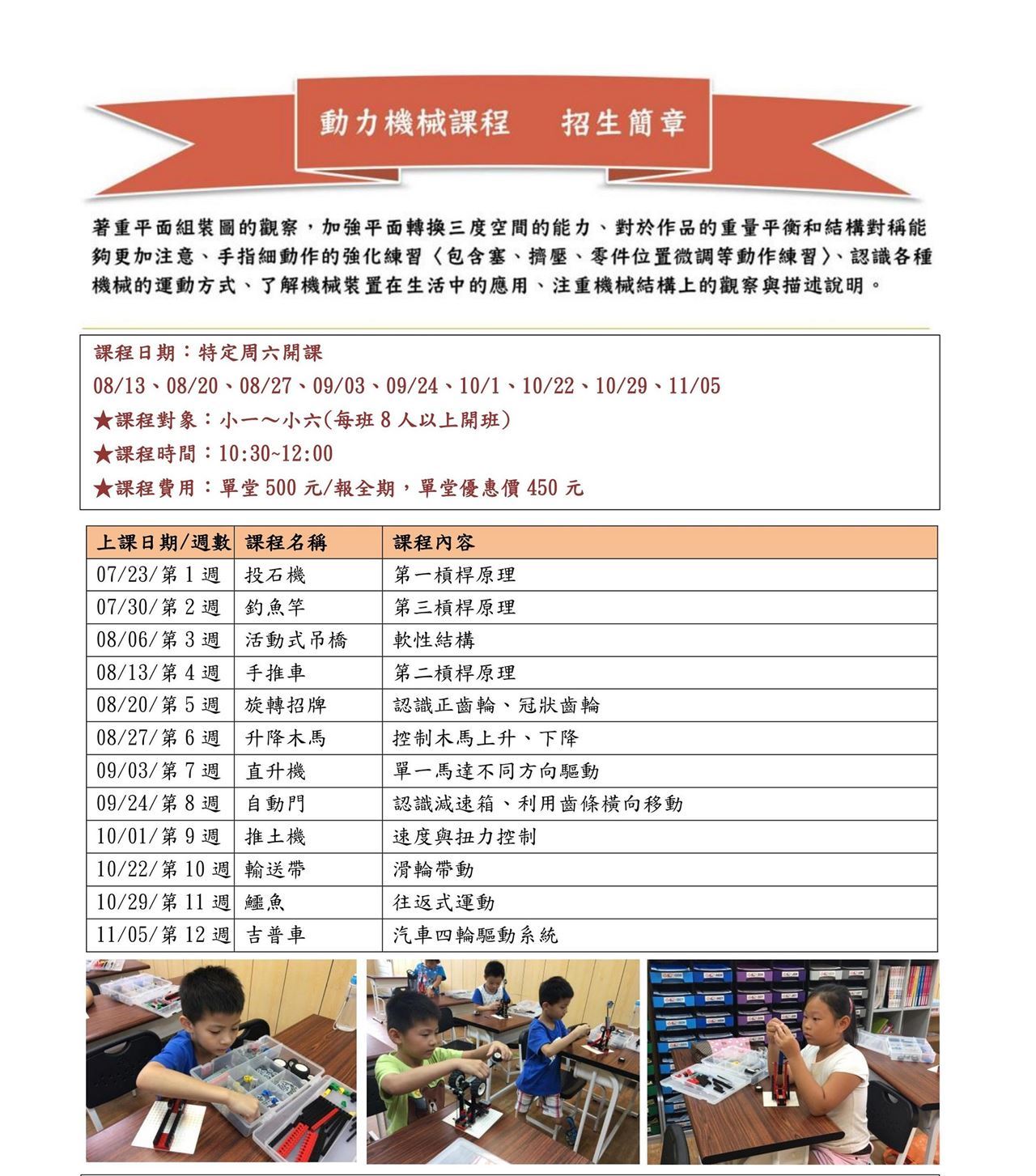 課程日期:特定周六開課 7/23、7/30、8/6、8/13、8/20、8/27、09/03、09/24、10/1、10/22、10/29、11/5