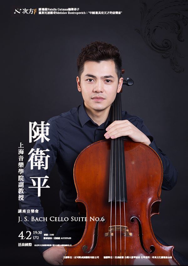 尼可樂N次方,周末的小小聚會+音樂分享。本次邀請到來自上海,曾為大提琴泰斗羅斯托波維奇讚譽為"中國最有天份的音樂家"的上海音樂院副教授陳衛平,為您演奏巴哈大提琴無伴奏第六號,並以講座音樂會的形式分享樂曲背景。(現場備有茶點飲料)