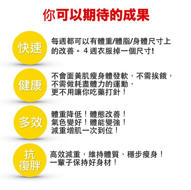 沒問題的 !我們有飲食菜單,只要搭配體重計畫的菜單,一樣也可以90天保證效果