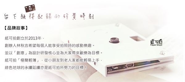這是個屬於台灣的新品牌,我們會努力將紙可拍推向國際、震撼世界,也讓世界驚艷台灣的創新實力,來自每個充滿創意的你,你的紙可拍。