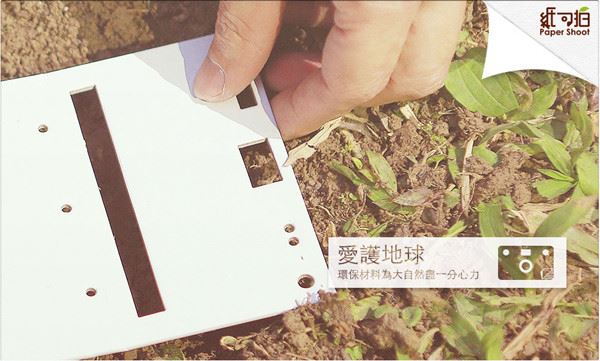 紙 可拍是目前市場上唯一銷售的數位紙相機,「環保紙外殼」是我們最引以為傲的特色,不只具有創意的印刷,紙外殼可環境分解,讓地球永續經營。