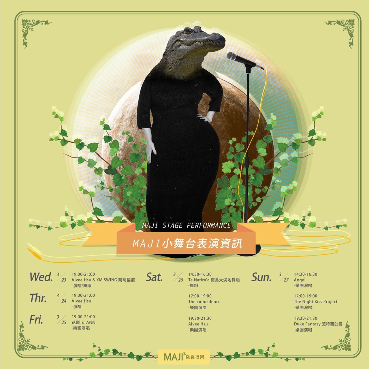 | 3/23(三) | 19:00-21:00 | Aivee Hsu & YM SWING陽明搖擺 | 演唱/舞蹈 |
