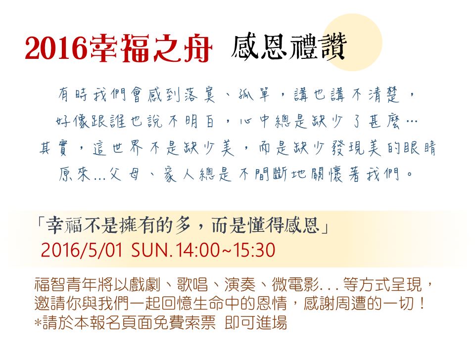 2016幸福之舟感恩禮讚 網路索票區