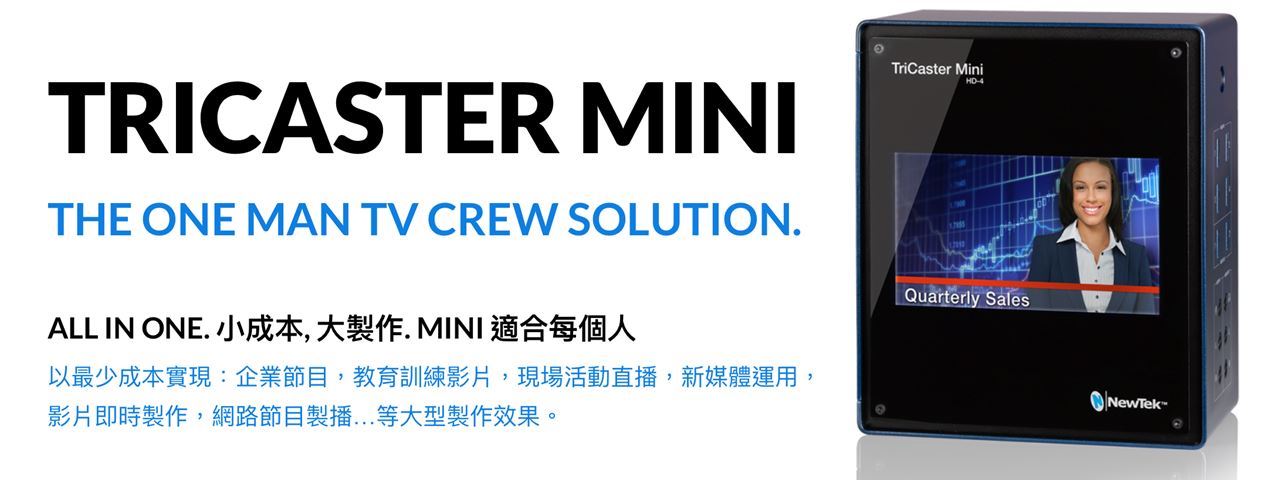 免費體驗全球最新的節目製播趨勢,全程採用 NewTek™ TriCaster Mini 軟硬體設備。