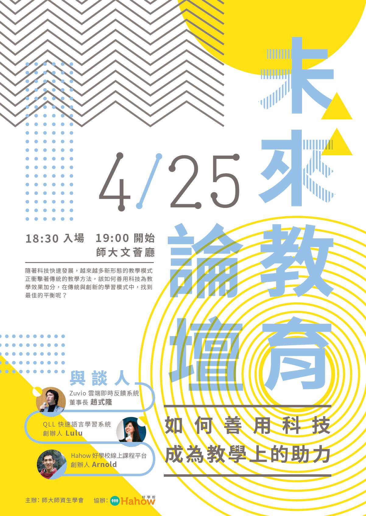 師大師資生學會首度與 Hahow好學校 合作,邀請到三位在教育新創界的新星,與大家聊聊教育該如何創新?未來的教育會是什麼面貌?我們又該如何在傳統與創新的教育模式中找到最佳平衡?