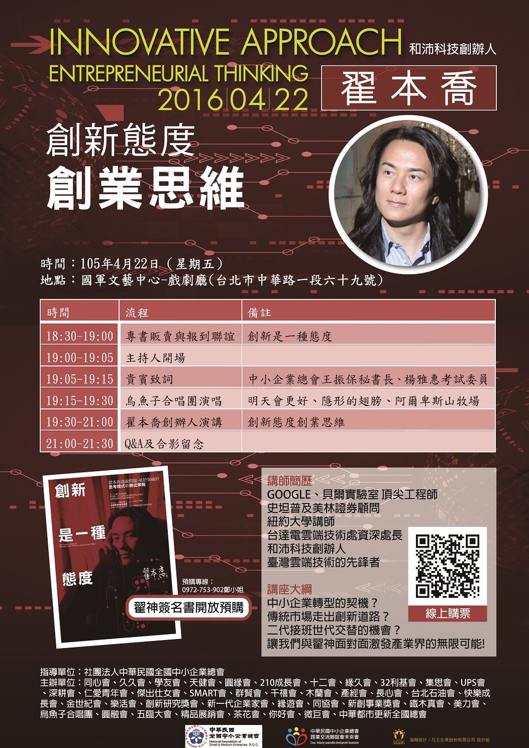 *本講座已由中小企業主認購780張票,另開放150張票給一般有興趣的民眾入場*