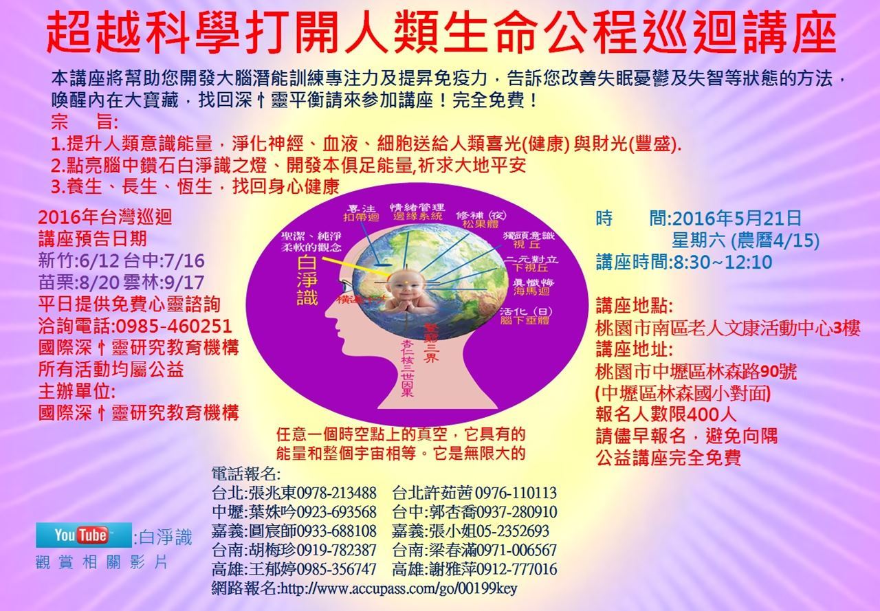 講座日期:2016 年 5月 21日 星期六 (農曆4 /15)