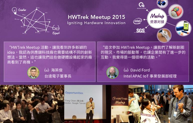 HWTrek Meetup,是 HWTrek Asia Innovation Tour 的行程之一,自 2014 年以來已成功舉辦兩屆。在 HWTrek Meetup 創新與製造媒合會中,來自全球的 IoT 新興企業與供應鏈專家,共同探討全球智慧硬體創新應用趨勢,開闢出新的合作商機。