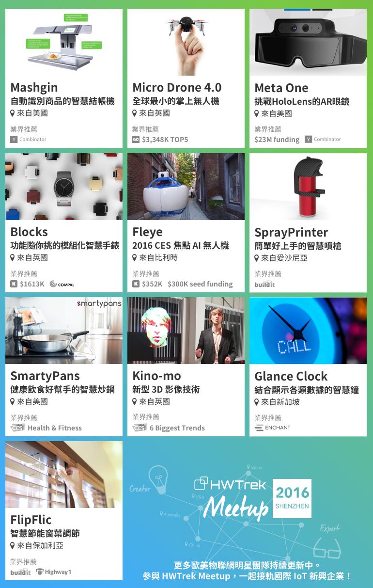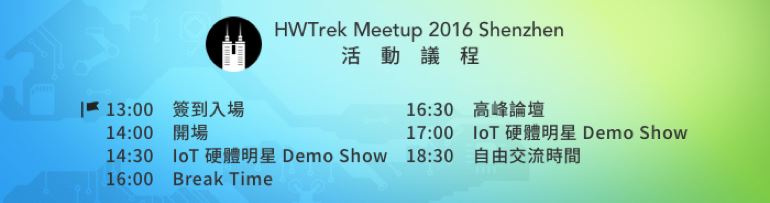 4月27日,HWTrek Meetup 2016 Shenzhen • 全球智慧型軟硬體新應用、物聯網商機,一網打盡!