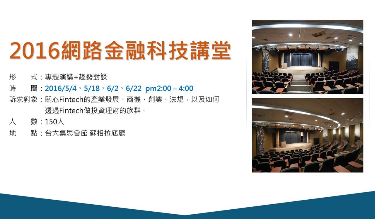 一位體制內的專業經理人,一位體制外的拓荒者,面對金融科技FinTech世界浪潮來襲時,台灣各方要如何因應?如何發展台灣FinTech產學聚落?兩個背景殊異的人會擦出什麼火花,各方熱烈期待!