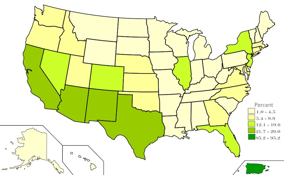 現今美國為世界上第二大西班牙語國家,講西文的人口約為5260萬,僅次於墨西哥。預計在2050年之前,美國將擁有世界上最多的西班牙語人口,達1億3,280萬人。
