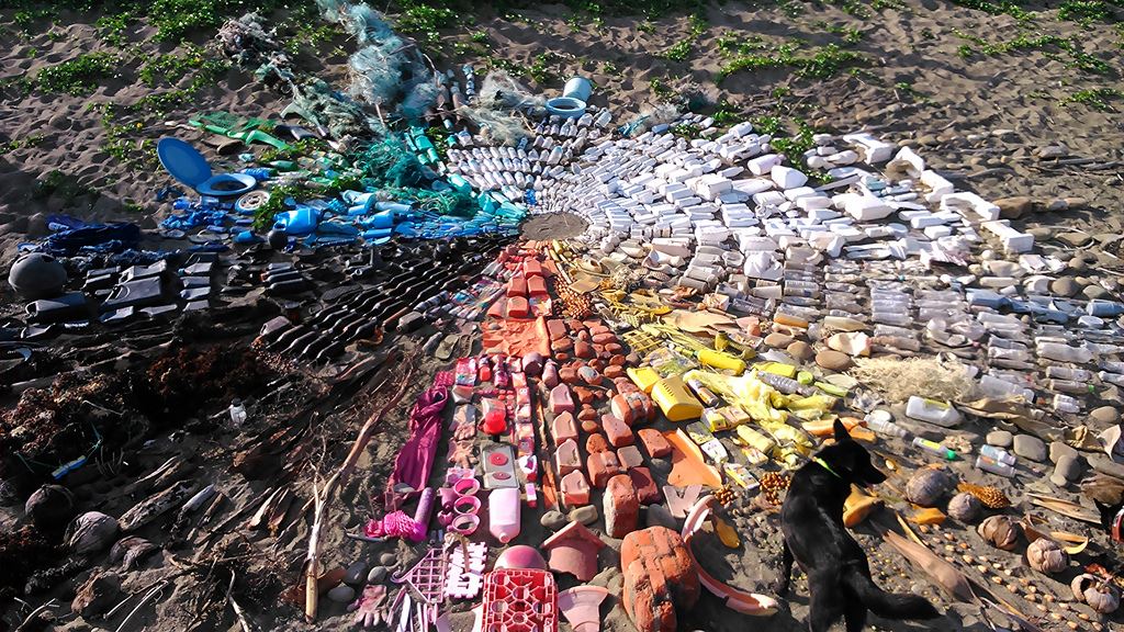 旅居香港的德國藝術家Liina Klauss,喜歡在沙灘上撿垃圾,她把淨灘過程收集到的垃圾,依其對色彩的敏感來重新排列,做成甚具美感的裝置藝術。透過她獨特的眼光,經歷了宛如探險式的創作歷程,是一場從垃圾到藝術,再回歸自然山水的反思。