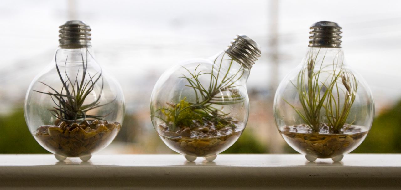 比起一般的盆栽,燈泡裡的一點綠意不僅造型特殊,而且易於照顧、整理,最適合想要用植物點綴書桌或居家空間,卻又沒有太多餘裕的你。