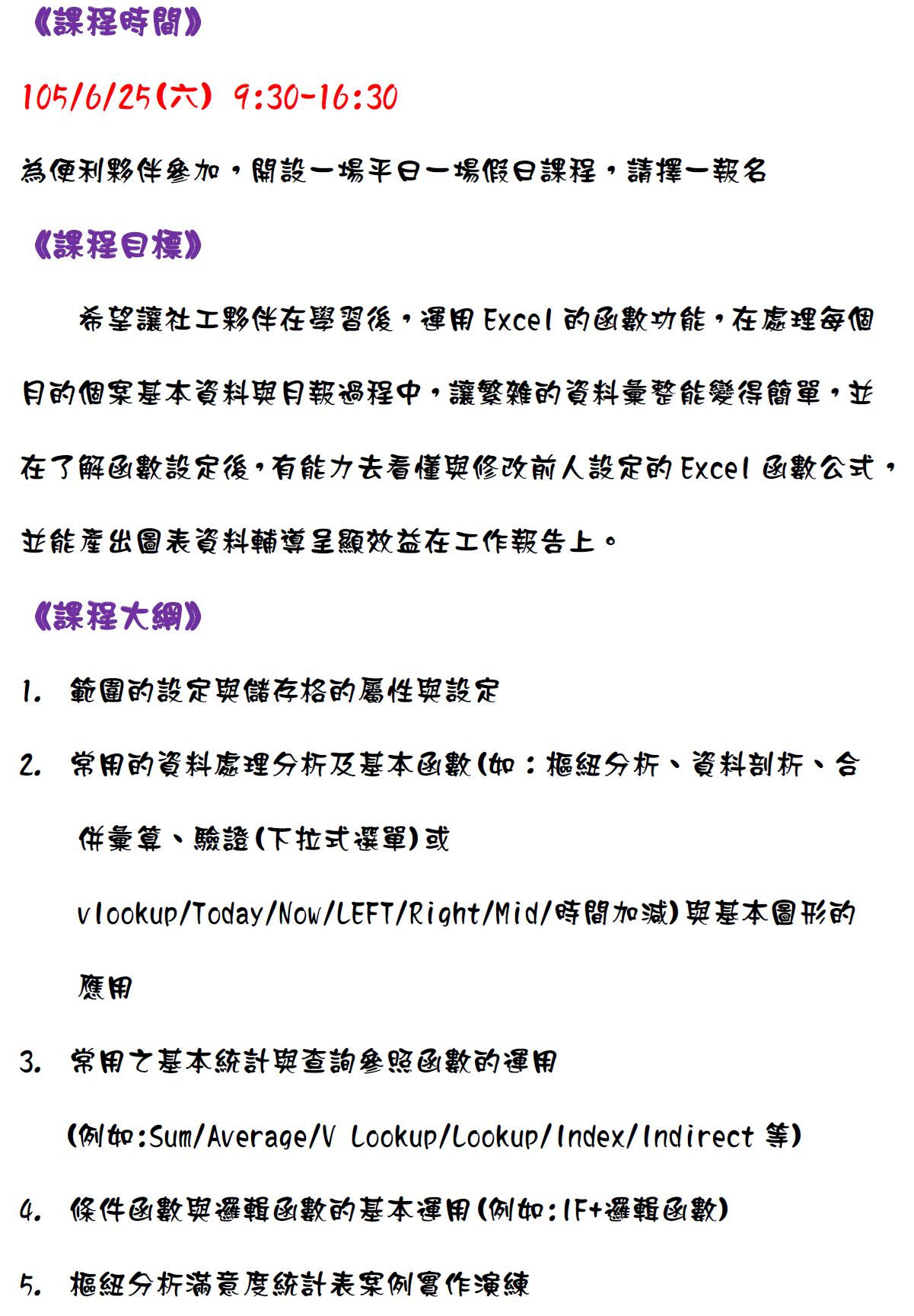 【此連結為6月25日之課程,請確認後再點選報名】◎講師簡介◎溫杰(Kevin)老師畢業於香港中文大學研究所工商管理系,目前是社團法人台灣社會工作實務發展協會特約顧問,過去在企業管理顧問界是相當有名的資訊顧問,任職於全台最大的資訊服務公司鼎新電腦。教學經驗豐富。Kevin老師在EXCEL教學上會利用許多邏輯思考的方式協助學員去設計試算表,用最簡單的方式幫助學員快速進入EXCEL的世界。Kevin老師也在非營利組織的管理上有許多經驗,對於非營利組織所需要的EXCEL表格也非常熟悉,能幫助您在管理上事倍功半、效率倍增!