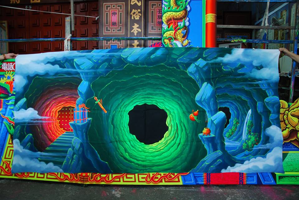 在師父張錦濤門下7年,不僅學習到戲劇佈景彩繪,同時也