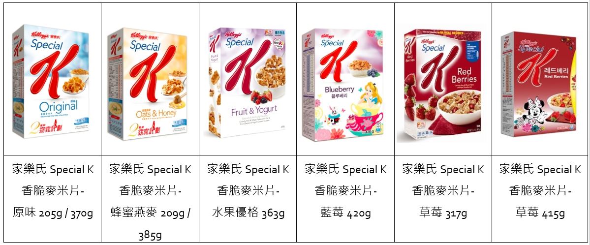※ Special K 產品品項標準如下,