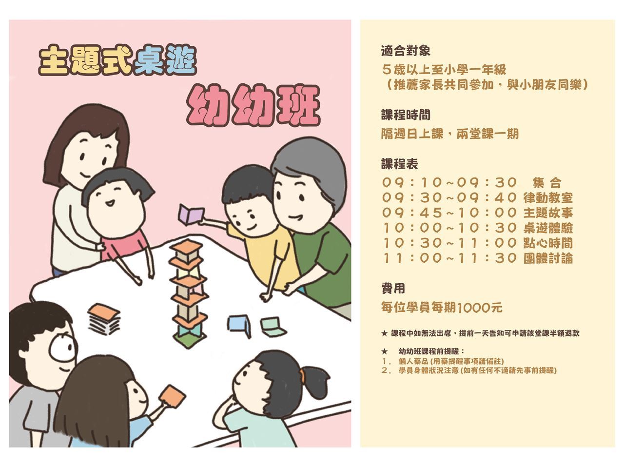 適合對象:5歲以上至小學一年級 (家長免費.推薦參加)課程時間:隔週日,兩堂課一期