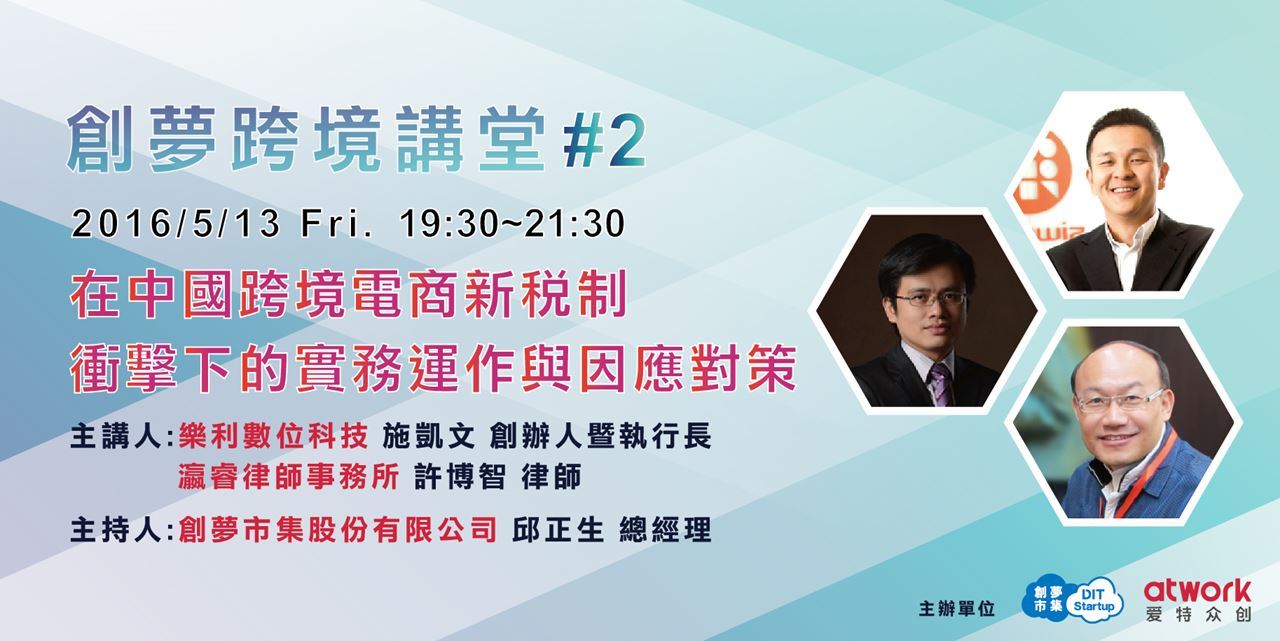 創夢跨境講堂將於5月13日(週五)晚上由創夢市集公司與廈門愛特眾創共同舉辦一場針對中國電商新稅制的因應對策與實務運作的演講。為使對策與實務內容可以完全貼切台灣業者現階段的需求,特邀請同時擁有電子商務與品牌運營經銷團隊且近期每年營運超過10億電商營收的樂利數位科技公司創辦人暨執行長施凱文Kevin,以及常於各創業加速平台提供稅制法律服務與諮詢的瀛和律師機構兩岸事務中心的許博智律師,二位實務經驗豐富的講者,將會針對台灣創新創業電商團隊的需求,分享他們在中國新稅制下觀察與找出的快速、有效地因應對策與實務運行的戰術與方式。