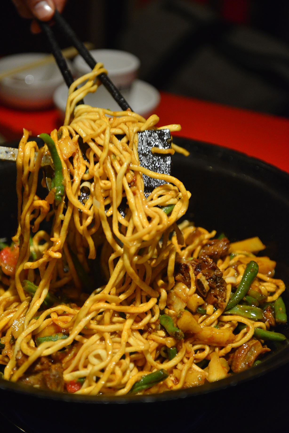 v內蒙古麵食種類繁多,悶麵也是其中一絕!悶麵常見的食材有馬鈴薯、五花肉、四季豆等,先以熱火將豬肉逼出油脂,再將各式蔬菜下鍋,放入蔥、薑、蒜、花椒、辣椒等辛香料,再加上醬油、清水,入麵悶熟。專賣悶麵的餐廳,會在桌上設置一個大鍋,由廚師現場製作。