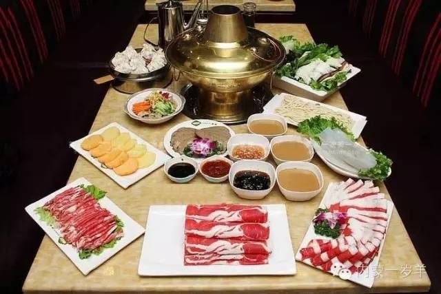 v由於遊牧民族的生活經常變動,因此簡單迅速的料理方式頗受歡迎,其中的涮羊肉可說是烹調簡便的代表,這道眾人喜愛的美食還具有悠久的歷史。早在一千一百年前的遼代壁畫裡,就出現了契丹人吃涮羊肉的情景,畫中三個契丹人圍爐而坐,有的正用筷子在鍋中涮羊肉,桌上擺有呈著羊肉與配料的盤子,與今日的情景差異不大。傳統上,中式涮羊肉的吃法必須以清水涮肉,有時水裡會加入蔥、薑、桂圓、紅棗、枸杞等少許藥材提味,但基本上是沒有味道的,煮熟的食材需另沾醬料,但是如今許多內蒙的火鍋店已改良了這種吃法,提供番茄、藥膳、麻辣等湯底,與台式火鍋的吃法十分相似。