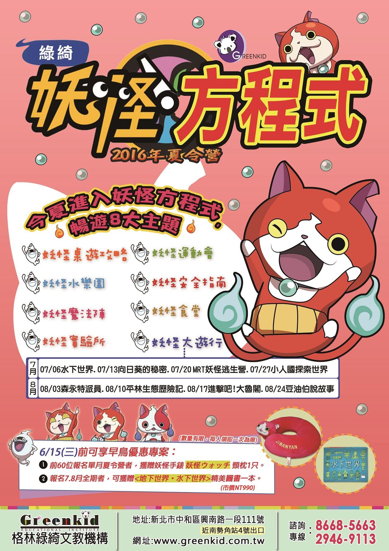 暑假期間:2016/07/1(五)~2016/07/29(五),2016/08/1(一)~2016/08/30(二)