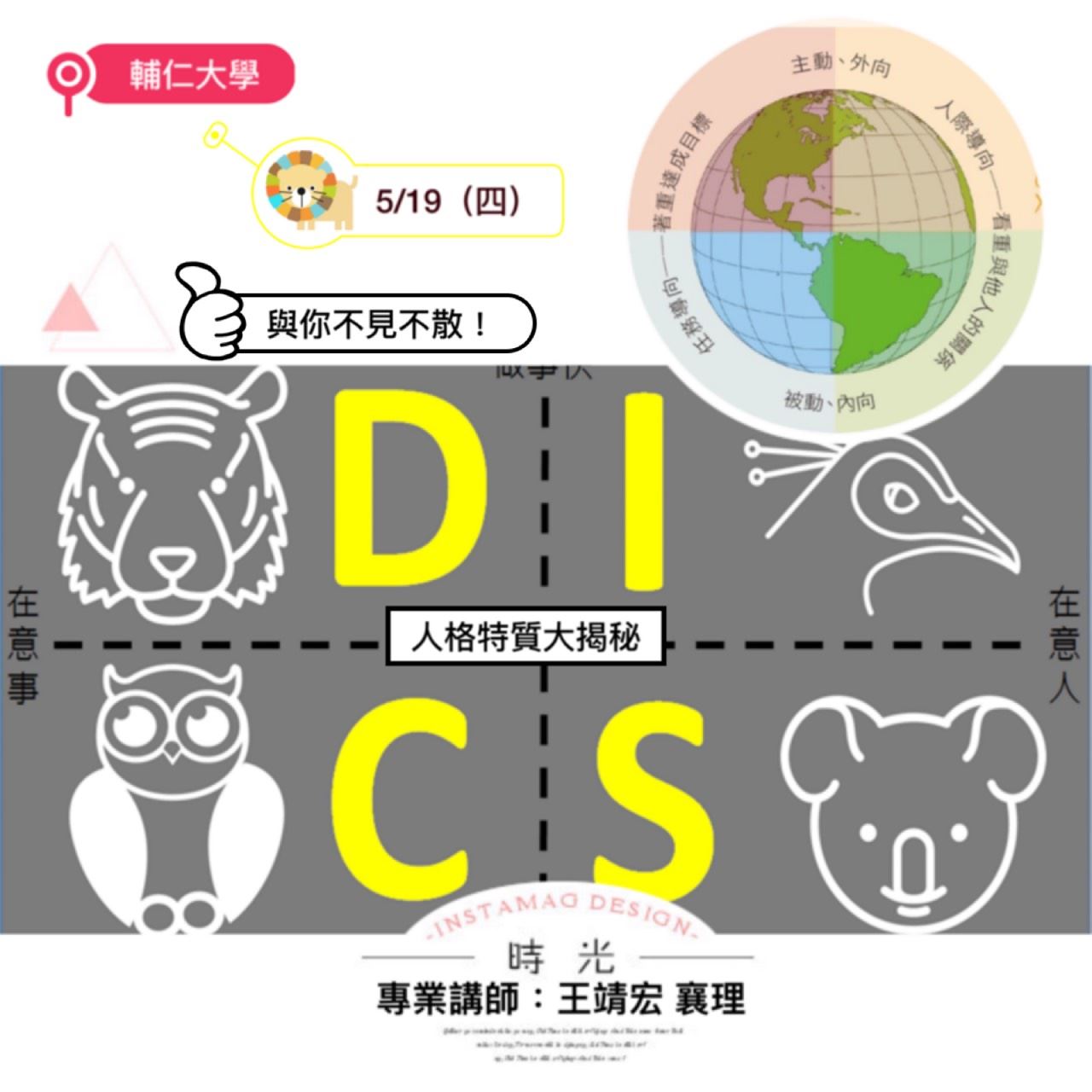 人數有限!限時限量開放報名!D 支配型 I 影響型 S穩定型 C謹慎型你是哪一型,快來了解一下自己,讓未來做起是來更事半功倍吧聯絡人員吳姝勲 0914080925 Line:joyeux925有場次可供選擇唷!