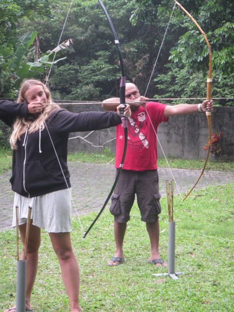 原住民傳統射箭教學&體驗。【註一】---別懷疑,此弓與箭並非兒戲,此乃純手工特製弓/箭,不要開玩笑嘿!!(那是人,不是山豬)。