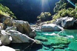 【註四】:裡位在花蓮縣秀林鄉銅門村的慕谷慕魚(Mukumugi),緣自太魯閣族的譯音,用他們的語言頌讚這片世外桃源,有幸能入內的遊客欣賞如此美景的同時,應該深深體會到太魯閣族人對這塊土地的疼惜之情。慕谷慕魚的溪水,很綠卻很透明,有陽光照在水面上,會像綠寶石般,波光粼粼、閃閃發亮!