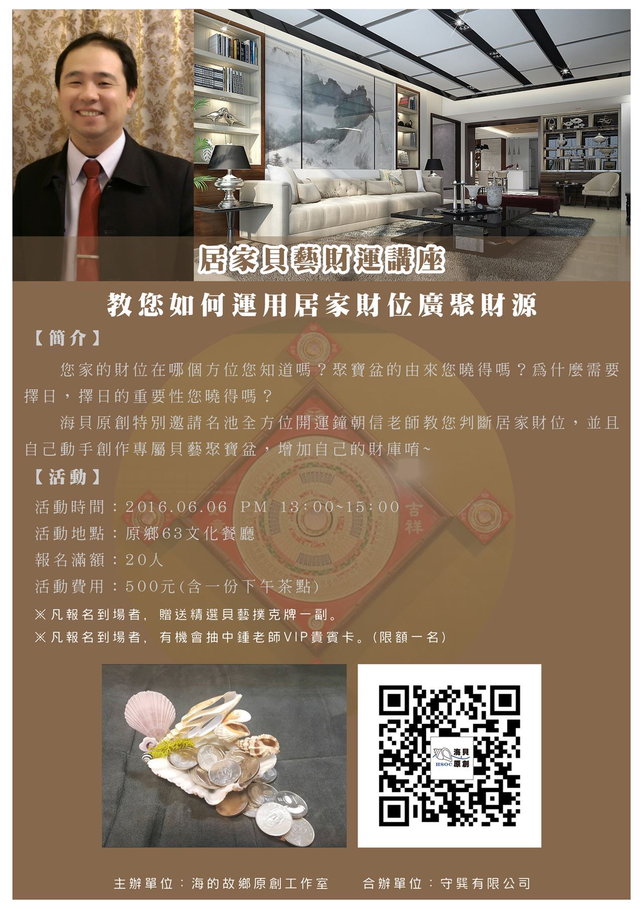 海貝原創特別邀請名池全方位開運鐘朝信老師教您判斷居家財位,並且自己動手創作專屬貝藝聚寶盆,增加自己的財庫唷~
