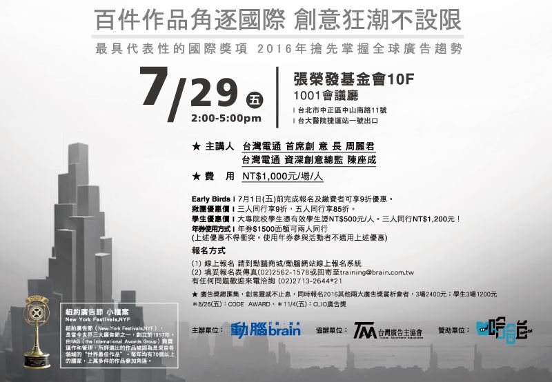 【2016紐約廣告獎賞析會】-百件作品角逐國際 創意狂潮不設限