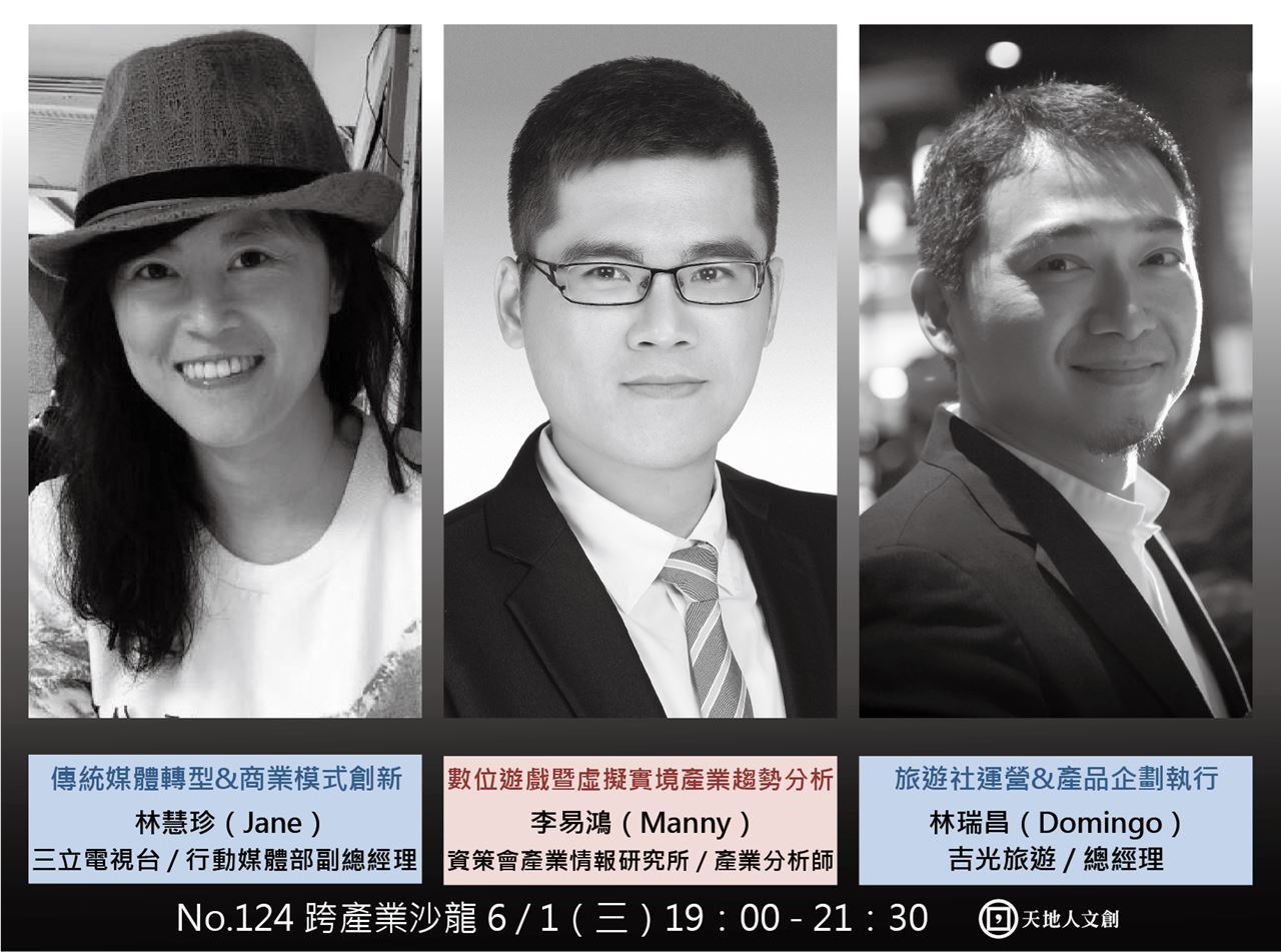 最新場次【 跨產業沙龍 N.124】傳統媒體轉型&商業模式創新、旅遊社運營&產品企劃執行、數位遊戲暨虛擬實境產業趨勢分析